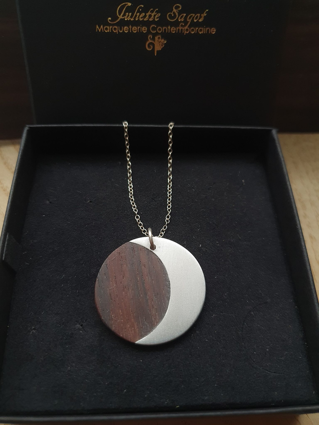 Médaillon en marqueterie de bois et métal (Ebène et lune en aluminium)